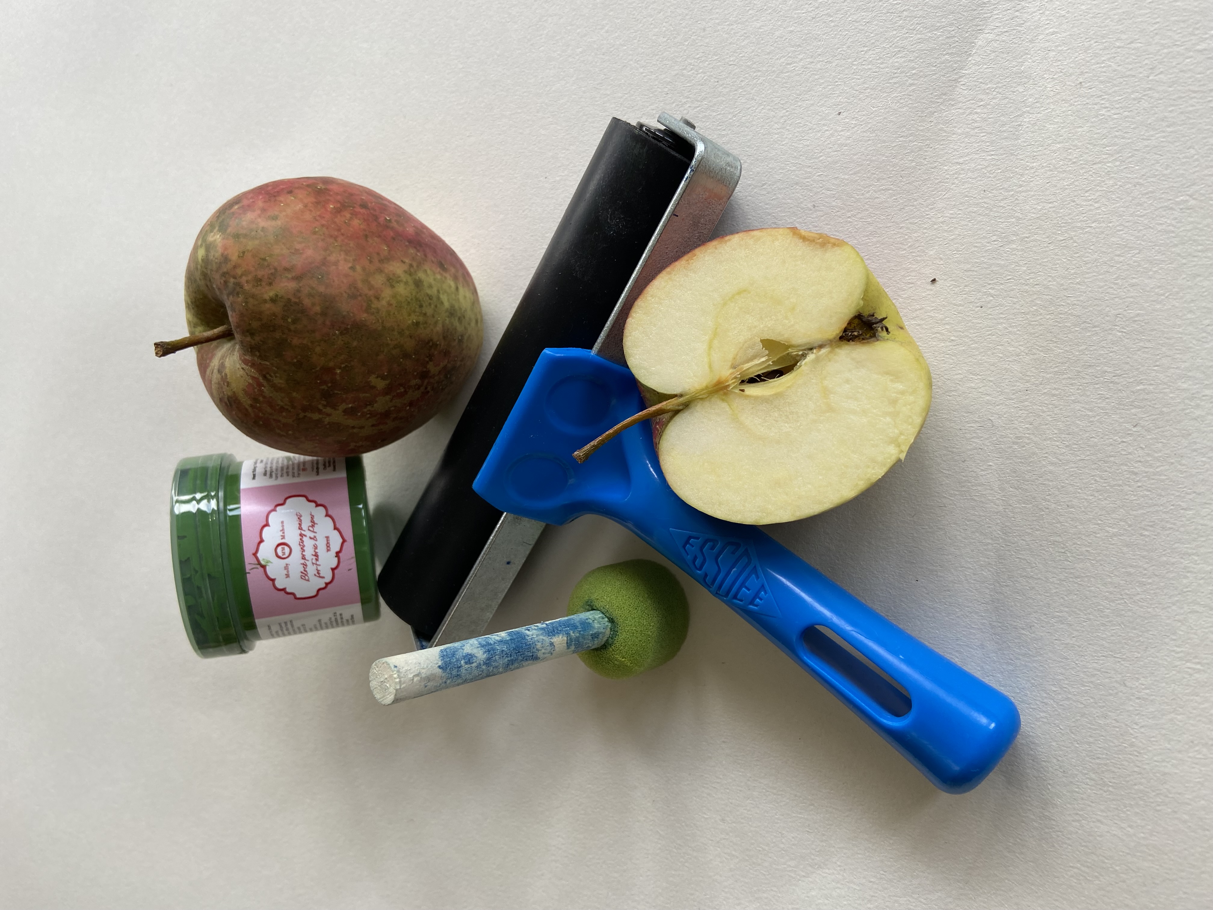 I found out along the way that sad apples make great prints, but squishy apples do not! The paint soaks into the flesh and the result is a mess, not a crisp print.